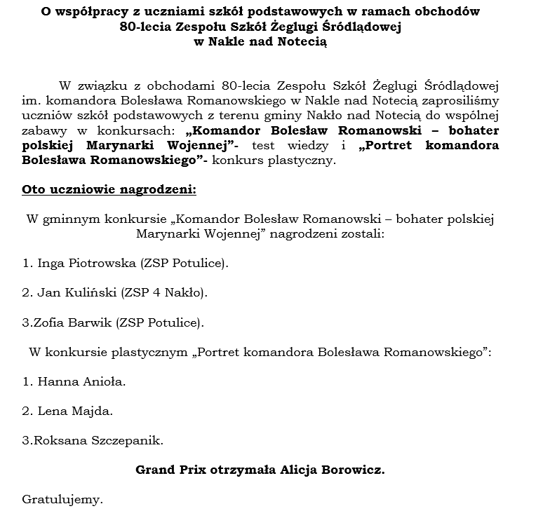 Link do testu. Wystarczy kliknąć, wpisać maila i rozwiązać nie korzystając z żadnych pomocy naukowych. Test związany jest z naszą uroczystością 80 lecia powstania szkoły.