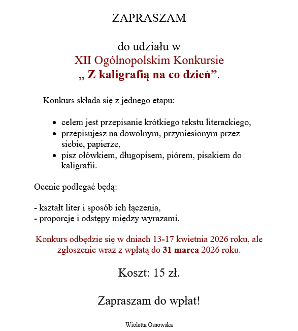 „Z kaligrafią na co dzień” 06-02-2026Data publikacji, 06-02-2026, Michał SwobodaAutor, Michał Swoboda, 134Ilość wyświetleń, 134 Archiwum